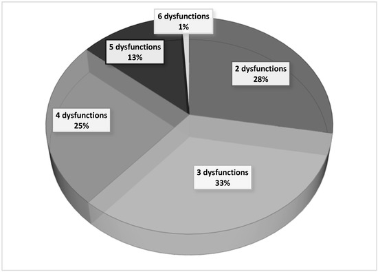 Relative distribution of the number of organ dysfunctions in hospitalized patients with severe malaria.