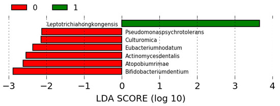 Differences in oral microbiota between Group 1 and Group 2 (1—Group 1; 0—Group 2).