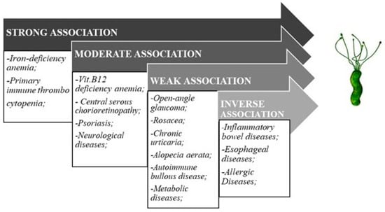 - Magen, E.; Delgado, J.S. Helicobacter pylori and skin autoimmune diseases. World J. Gastroenterol. 2014, 20, 1510–1516. [Google Scholar] [CrossRef] [PubMed]