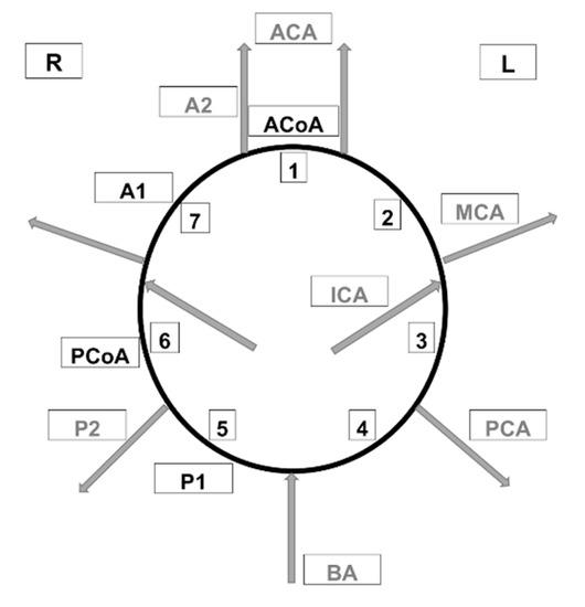 - De Borst, G.J.; Moll, F.L. Status of the circle of Willis and intolerance to carotid cross-clamping. Eur. J. Vasc. Endovasc. Surg. 2013, 45, 113. [Google Scholar] [CrossRef]