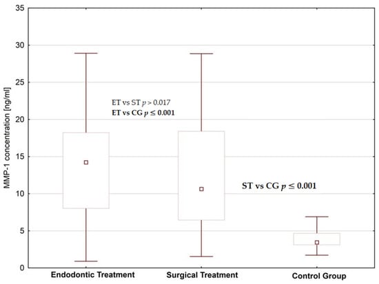Matuszczak, E.; Cwalina, I.; Tylicka, M.; Wawrzyn, K.; Nowosielska, M.; Sankiewicz, A.; Ołdak, Ł.; Gorodkiewicz, E.; Hermanowicz, A. Levels of Selected Matrix Metalloproteinases—MMP-1, MMP-2 and Fibronectin in the Saliva of Patients Planned for Endodontic Treatment or Surgical Extraction. J. Clin. Med. 2020, 9, 3971. https://doi.org/10.3390/jcm9123971
