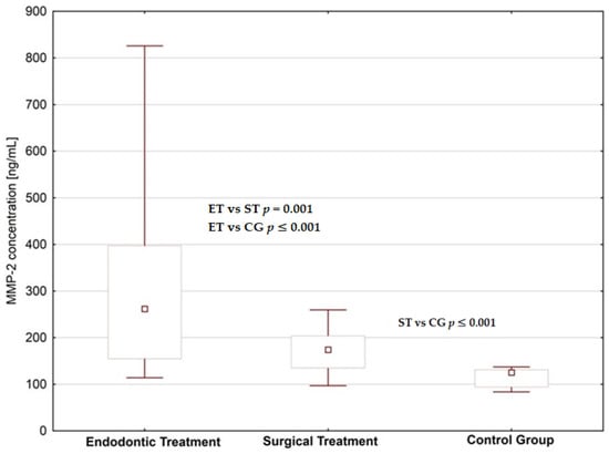 Matuszczak E, Cwalina I, Tylicka M, Wawrzyn K, Nowosielska M, Sankiewicz A, Ołdak Ł, Gorodkiewicz E, Hermanowicz A. Levels of Selected Matrix Metalloproteinases—MMP-1, MMP-2 and Fibronectin in the Saliva of Patients Planned for Endodontic Treatment or Surgical Extraction. Journal of Clinical Medicine. 2020; 9(12):3971. https://doi.org/10.3390/jcm9123971