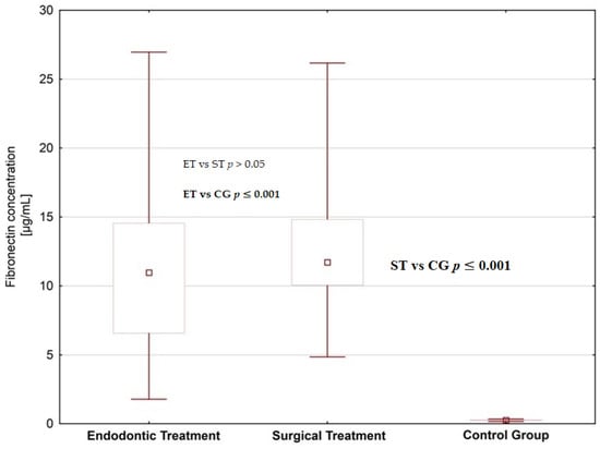 Levels of Selected Matrix Metalloproteinases—MMP-1, MMP-2 and Fibronectin in the Saliva of Patients Planned for Endodontic Treatment or Surgical Extraction