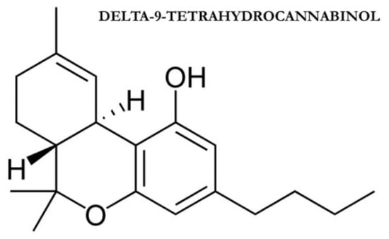 Cannabinoids may play an important role in IOP regulation via interaction with the ciliary muscle and Schlemm’s canal, as well as via modulation of cyclooxygenase-2 (COX-2) [37]. All these effects are obtained through interaction with CB1 receptor, as well as by modulation of prostanoids synthesis via cyclooxygenase (COX) pathway [12]. CB1 is widely expressed in both retina and anterior eye structures such as trabecular meshwork, Schlemm’s canal, iris, ciliary body muscle, and ciliary pigmented epithelium. This ubiquitous distribution suggests that multiple pathways may be involved in the IOP lowering effect of cannabinoids through the regulation of aqueous humor production and outflow (trabecular and uveoscleral) [12]. AEA and the synthetic cannabinoid CP 55,940 in fact interact with the CB1 receptor determining ciliary muscle contraction and consequent IOP reduction [38]. Activation of the CB1 receptor in the ciliary muscle may also determine vasodilatation with consequent reduction of aqueous humor production [39]. While AEA and CP55,940 act on the ciliary muscle THC isomer called trans-delta-9-tetrahydrocannabinol (delta-9-THC, Figure 2) and cannabigerol determines Schlemm’s canal dilation and consequent outflow facilitation [40]. Both AEA and delta-9-THC also enhance COX-2 expression with consequent increased production of prostaglandin E2 (PGE2) and metalloproteinases 1, 3, and 9 [41]. The enhanced transduction of these molecules determines extracellular matrix remodeling with consequent IOP lowering [41]. While the above-mentioned effects of cannabinoids have been demonstrated by several clinical studies [37,38,39,40,41], the exact role of these molecules in the physiological regulation of IOP is still unclear and needs to be clarified through further clinical trials.