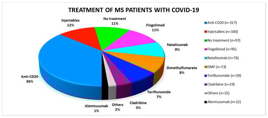 3.1. Distribution of DMTs among Published SARS-CoV-2 Positive MS Patients