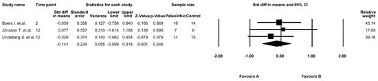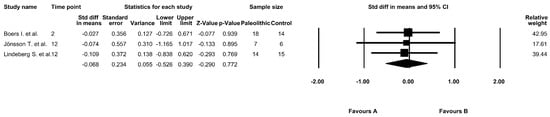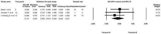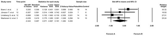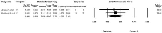 Jamka, M.; Kulczyński, B.; Juruć, A.; Gramza-Michałowska, A.; Stokes, C.S.; Walkowiak, J. The Effect of the Paleolithic Diet vs. Healthy Diets on Glucose and Insulin Homeostasis: A Systematic Review and Meta-Analysis of Randomized Controlled Trials. J. Clin. Med. 2020, 9, 296. https://doi.org/10.3390/jcm9020296