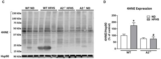 3.2. A2 Deletion Prevented HFHS Diet-Induced Oxidative Stress