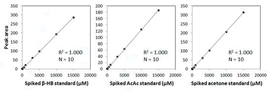 β-HB, AcAc and acetone were purchased from Sigma Aldrich (St. Louis, MO, USA). Serum pools were prepared by identifying and pooling both fasting and non-fasting serum samples with high and low ranges of the three ketone bodies from donor subjects (LabCorp, Morrisville, NC, USA) or by spiking.