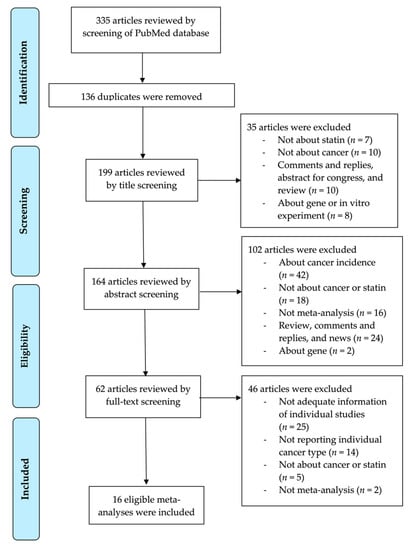 - Park, J.H.; Eisenhut, M.; van der Vliet, H.J.; Shin, J.I. Statistical controversies in clinical research: Overlap and errors in the meta-analyses of microRNA genetic association studies in cancers. Ann. Oncol. 2017, 28, 1169–1182. [Google Scholar] [CrossRef]