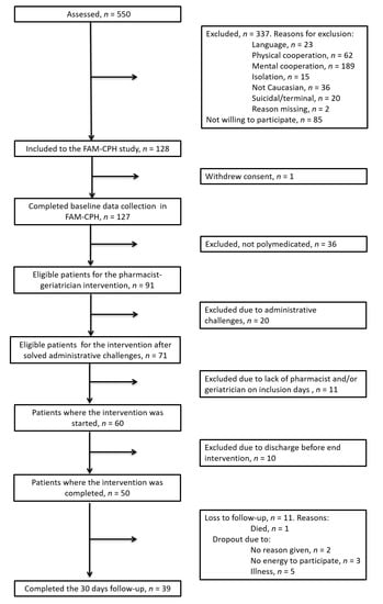 - Larsen, M.D.; Rosholm, J.U.; Hallas, J. The influence of comprehensive geriatric assessment on drug therapy in elderly patients. Eur. J. Clin. Pharmacol. 2014, 70, 233–239. [Google Scholar] [CrossRef] [PubMed]