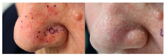 - Bagazgoitia, L.; Santos, J.C.; Juarranz, A.; Jaén, P. Photodynamic therapy reduces the histological features of actinic damage and the expression of early oncogenic markers. Br. J. Dermatol. 2011, 165, 144–151. [Google Scholar] [CrossRef] [PubMed]
