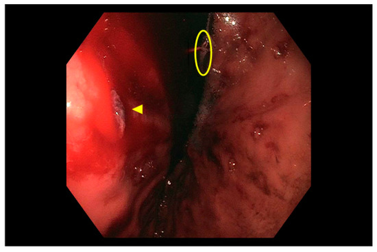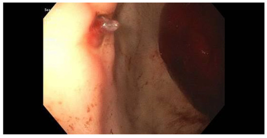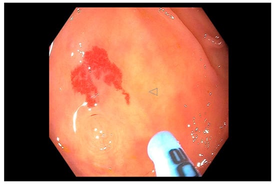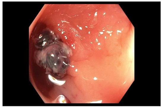 216. Kanwal, F.; Dulai, G.; Jensen, D.M.; Gralnek, I.M.; Kovacs, T.O.; Machicado, G.A.; Jutabha, R. Major stigmata of recent hemorrhage on rectal ulcers in patients with severe hematochezia: Endoscopic diagnosis, treatment, and outcomes. Gastrointest. Endosc. 2003, 57, 462–468. [Google Scholar] [CrossRef] [PubMed]