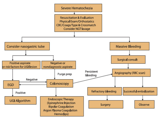 190. Barnert, J.; Messmann, H. Diagnosis and management of lower gastrointestinal bleeding. Nat. Rev. Gastroenterol. Hepatol. 2009, 6, 637–646. [Google Scholar] [CrossRef] [PubMed]