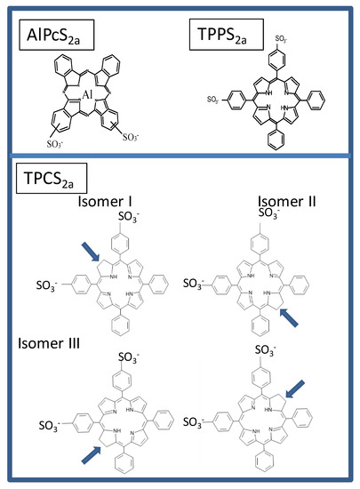 - Wang, J.T.; Berg, K.; Hogset, A.; Bown, S.G.; MacRobert, A.J. Photophysical and photobiological properties of a sulfonated chlorin photosensitiser TPCS(2a) for photochemical internalisation (PCI). Photochem. Photobiol. Sci. 2013, 12, 519–526. [Google Scholar] [CrossRef]