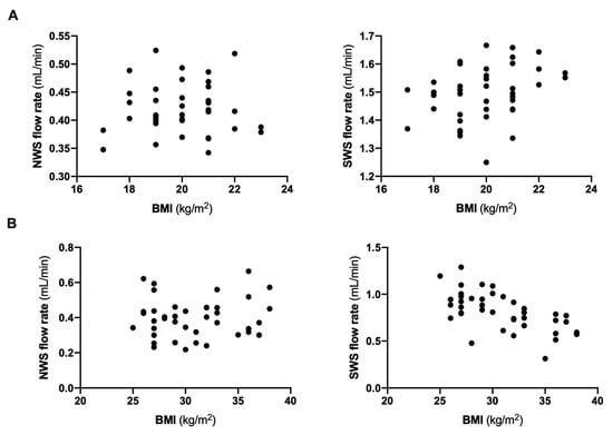 Scatter plots for BMI and NWS/SWS flow rate are presented in Figure 1.