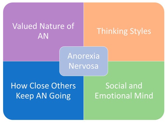 Furthermore, people with AN are more likely to report early maladaptive schema (pervasive negative themes regarding the self and one’s relationship with others []) and difficulties in emotion regulation, with a greater use of dysfunctional interpersonal emotion regulation strategies [,]. Problems in emotion regulation may play a key role in maintaining the symptoms of AN []. Thus, an interaction between social vulnerability traits, risks within the interpersonal environment, and dysfunctional emotion processing can predispose to the development of AN, a “social–emotional disorder” [].
