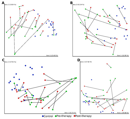 - Vázquez-Baeza, Y.; Pirrung, M.; Gonzalez, A.; Knight, R. EMPeror: A tool for visualizing high-throughput microbial community data. Gigascience 2013, 2, 16. [Google Scholar] [CrossRef] [PubMed]