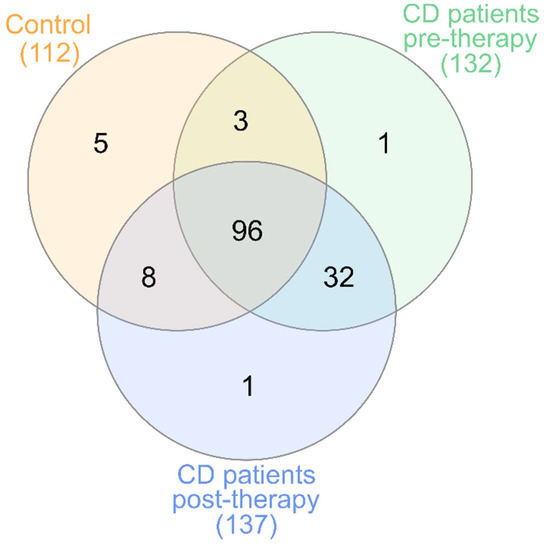 - Kowalska-Duplaga, K.; Gosiewski, T.; Kapusta, P.; Sroka-Oleksiak, A.; Wędrychowicz, A.; Pieczarkowski, S.; Ludwig-Słomczyńska, A.H.; Wołkow, P.P.; Fyderek, K. Differences in the intestinal microbiome of healthy children and patients with newly diagnosed Crohn’s disease. Sci. Rep. 2019, 9, 1–11. [Google Scholar] [CrossRef]