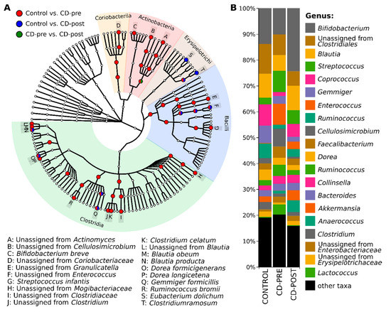 - Kolho, K.L.; Korpela, K.; Jaakkola, T.; Pichai, M.V.; Zoetendal, E.G.; Salonen, A.; De Vos, W.M. Fecal microbiota in pediatric inflammatory bowel disease and its relation to inflammation. Am. J. Gastroenterol. 2015, 110, 921–930. [Google Scholar] [CrossRef]