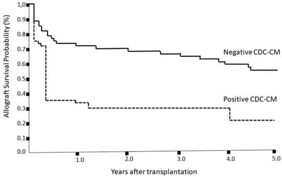 Other studies, on the other hand, have shown a significant impact of the pre-transplant +CDC-CM on the development of early graft rejection in liver transplant with organs from living or cadaveric donors [37,47,49,50,51,52].