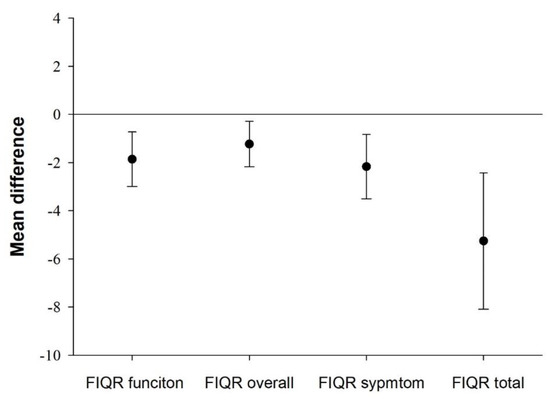 - Bennett, R.M.; Bushmakin, A.G.; Cappelleri, J.C.; Zlateva, G.; Sadosky, A.B. Minimal clinically important difference in the fibromyalgia impact questionnaire. J. Rheumatol. 2009, 36, 1304–1311. [Google Scholar] [CrossRef]