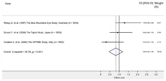 - Zhou, Y.; Zhu, W.; Wang, C. The effect of smoking on the risk of primary open-angle glaucoma: An updated meta-analysis of six observational studies. Public Health 2016, 140, 84–90. [Google Scholar] [CrossRef]