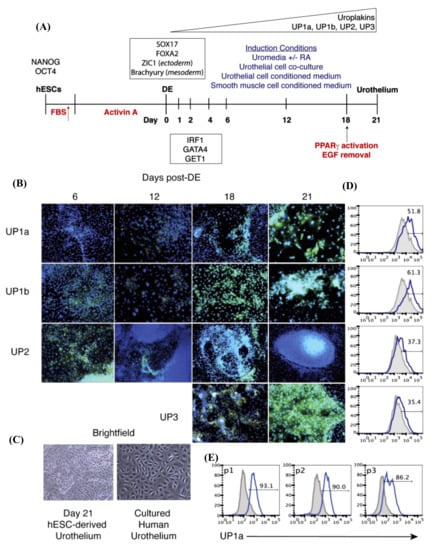 - Osborn, S.L.; Kurzrock, E.A. In Vitro Differentiation and Propagation of Urothelium from Pluripotent Stem Cell Lines. In Urothelial Carcinoma; Springer: Berlin/Heidelberg, Germany, 2018; pp. 137–144. [Google Scholar]