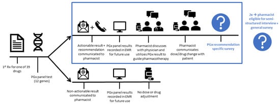 - Haga, S.B.; LaPointe, N.M.; Cho, A.; Reed, S.D.; Mills, R.; Moaddeb, J.; Ginsburg, G.S. Pilot study of pharmacist-assisted delivery of pharmacogenetic testing in a primary care setting. Pharmacogenomics 2014, 15, 1677–1686. [Google Scholar] [CrossRef]