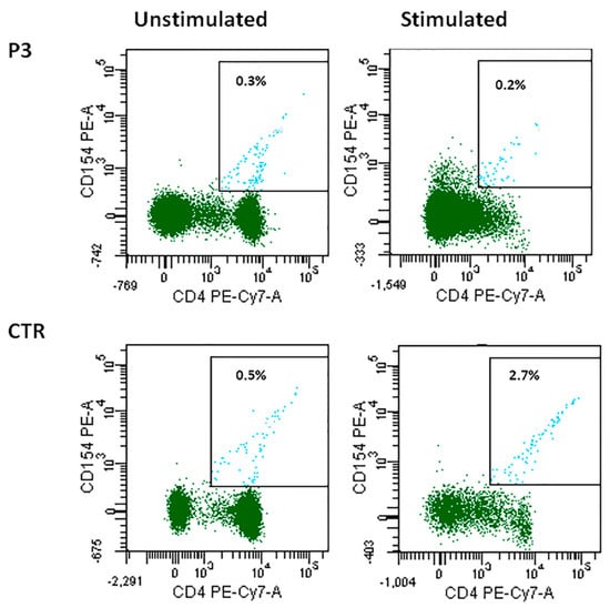 CD40L expression in patient P3 unstimulated and stimulated CD4+ cells as compared with the control.