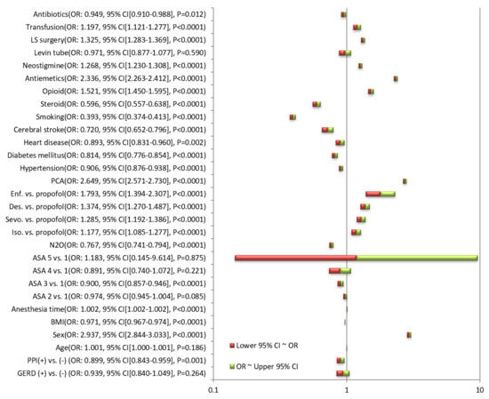 3.2. Odds Ratio for PONV