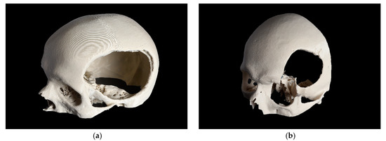 - Joffe, J.M.; Nicoll, S.R.; Richards, R.; Linney, A.D.; Harris, M. Validation of computer-assisted manufacture of titanium plates for cranioplasty. Int. J. Oral Maxillofac. Surg. 1999, 28, 309–313. [Google Scholar] [CrossRef]