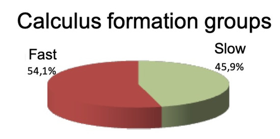 The complete sample was divided into two groups according to the speed of calculus formation (