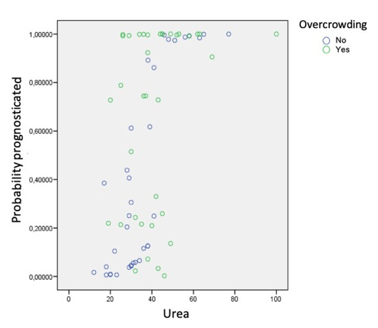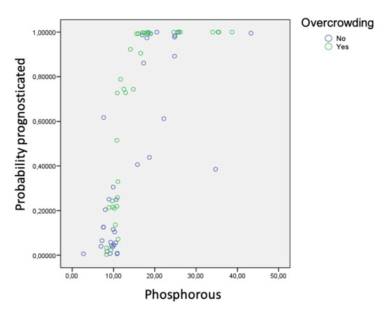 If the individual did not present dental crowding, the probability of belonging to the group of rapid calculus formers increased progressively. However, when dental crowding was present, the relation between urea and this probability was not exhibited clearly; in fact, for the specific urea values between 20 and 50, subjects could belong to either group. This is to say, the presence of urea increases the probability of rapid calculus formation regardless of the presence of dental crowding. Dental crowding was not directly associated with the accumulation of calculus as the only etiological factor, but in combination with phosphorus and urea saliva levels.