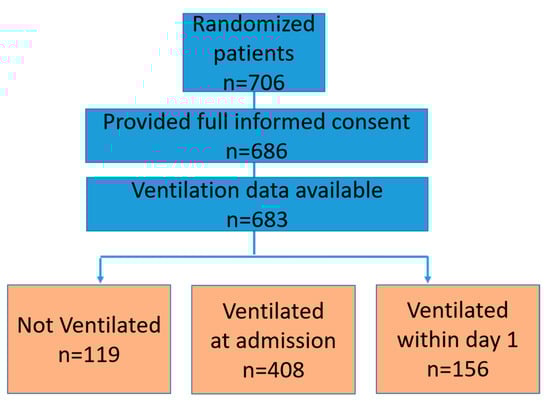 | No Ventilation | Ventilation at Admission | Ventilation within Day 1 after Admission | ||