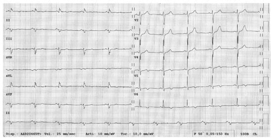 - Marcus, F.I.; McKenna, W.J.; Sherrill, D.; Basso, C.; Bauce, B.; Bluemke, D.A.; Calkins, H.; Corrado, D.; Cox, M.G.; Daubert, J.P.; et al. Diagnosis of arrhythmogenic right ventricular cardiomyopathy/dysplasia: Proposed modification of the task force criteria. Circulation 2010, 121, 1533–1541. [Google Scholar] [CrossRef]