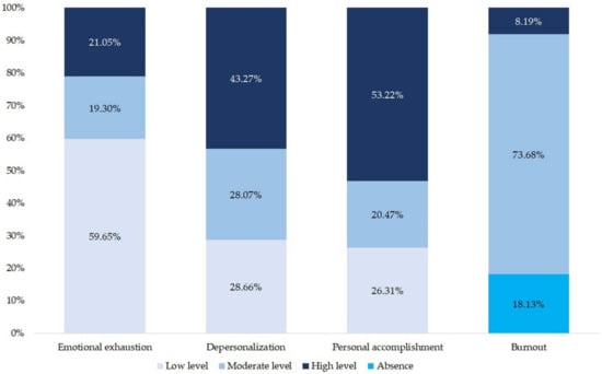 Levels of emotional exhaustion, depersonalization, personal accomplishment, and burnout.