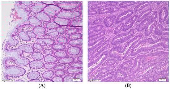 - Hamilton, S.; Rubio, C.; Volgenstein, B.; Sobin, L.; Kudo, S.; Fogt, F.; Winawer, S.J.; Goldgar, D.; Jass, J. Carcinoma of the colon and rectum. In World Health Organization Classification of Tumours, Pathology and Genetics of Tumours of the Lung; Hamilton, S.R., Aaltonen, L.A., Eds.; IARC Press: Lyon, Franch, 2000; pp. 105–120. [Google Scholar]