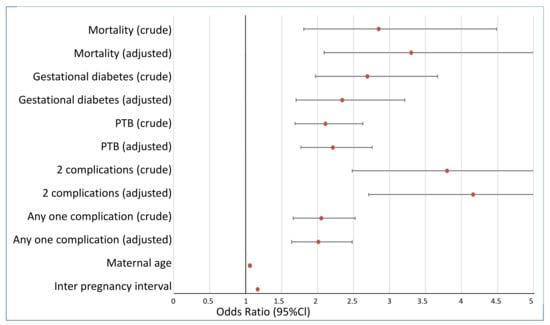 Multivariable analysis for the association between first pregnancy complications and perinatal mortality risk in second pregnancy.