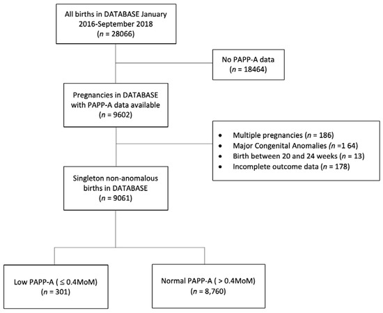 APA StyleTurner, J. M., & Kumar, S. (2020). Low First Trimester Pregnancy-Associated Plasma Protein-A Levels Are Not Associated with an Increased Risk of Intrapartum Fetal Compromise or Adverse Neonatal Outcomes: A Retrospective Cohort Study. Journal of Clinical Medicine, 9(4), 1108. https://doi.org/10.3390/jcm9041108