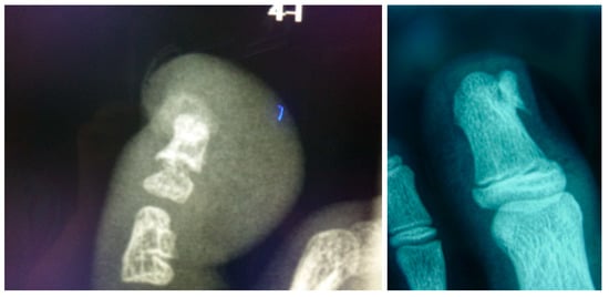 - Goktay, F.; Atis, G.; Gunes, P.; Macit, B.; Celik, N.S.; Gurdal Kosem, E. Subungual exostosis and subungual osteochondromas: A description of 25 cases. Int. J. Dermatol. 2018, 57, 872–881. [Google Scholar] [CrossRef] [PubMed]