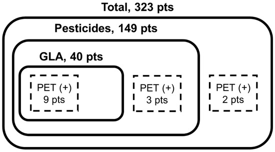 A schema to illustrate the selection process of patients. GLA, glufosinate ammonium; PET, positron emission tomography.