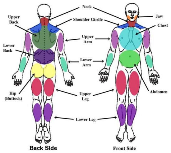 Body areas included in the Widespread Pain Index (WPI) scale of 2010 FMS ACR diagnostic criteria [2].