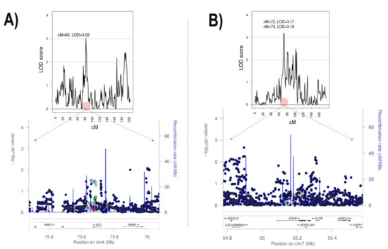 | Chr | cM | Max LOD | Closest Genes | Relevant Associated Phenotypes in the Region (GWAS Catalog) |