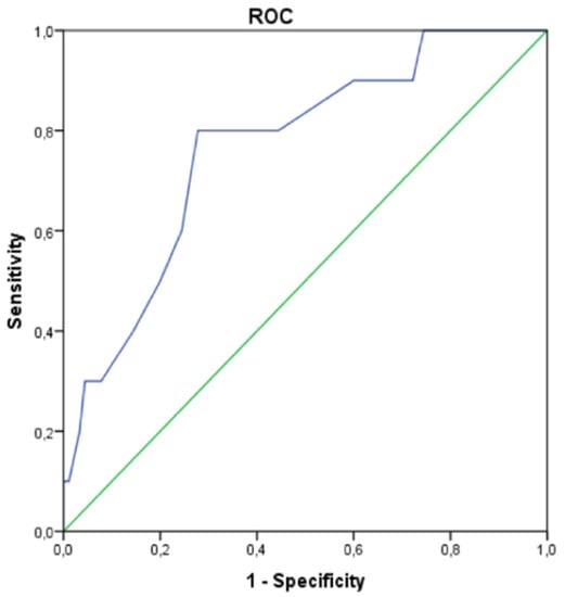 The main purposes of this study were to assess (i) the optimal RRI cutoff point to detect AKI and (ii) test whether Serum cystatin C and combined serum cystatin C and Serum cystatin C definition for AKI diagnosis provides extra benefit. sCyC has been validated as an alternative to sCr for diagnosing AKI []. Likewise, sCyC has been proposed as a more sensitive AKI marker [,,]. Of importance, Cystatin C is not affected by muscle mass or diet and is less strongly associated with age, sex, and race than creatinine [] and makes this biomarker of particular interest in AS patients and particularly among the TAVR population.