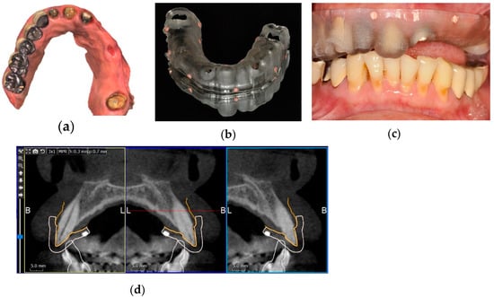 - Stapleton, B.M.; Lin, W.S.; Ntounis, A.; Harris, B.T.; Morton, D. Application of digital diagnostic impression, virtual planning, and computer-guided implant surgery for a CAD/CAM-fabricated, implant-supported fixed dental prosthesis: A clinical report. J. Prosthet. Dent. 2014, 112, 402–408. [Google Scholar] [CrossRef]