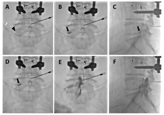 - Choi, Y.K.; Barbella, J.D. Evaluation of epidurographic contrast patterns with fluoroscopic-guided lumbar interlaminar ventral epidural injection. Pain Pract. 2009, 9, 275–281. [Google Scholar] [CrossRef] [PubMed]