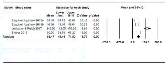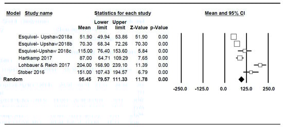 The data included in the meta-analysis have been combined according to the random effects model and expressed as forest plots. The mean difference, confidence intervals (CI) at 95%, as well as the z- and p-values for each individual study are supplied. The heterogeneity study was carried out by an I2 statistical calculation and applying Cochran’s Q-test. To explain the heterogeneity detected, a meta-regression analysis was applied according to the maximum likelihood model.