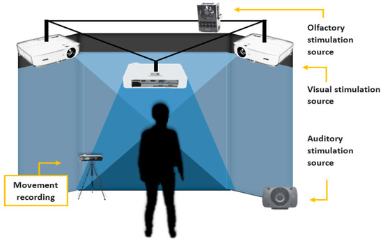 Second, the participant was accompanied in the CAVE™, by the researcher, and by his or her family caregiver according to the child’s needs. The participant was placed in the middle of the virtual room, standing in front of the central surface at 1.5 m. The presentation order of VR stimuli conditions for all participants was: visual, visual-auditory, and visual-auditory-olfactory. Before each stimuli VR condition, a two-minute baseline was recorded, and subsequently, the stimuli VR experience condition was presented. The presentation order was maintained the same for all participants to avoid and prevent sensory overload and stress that they could experience.