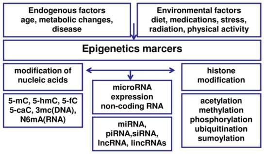 - Romani, M.; Pistillo, M.P.; Banelli, B. Environmental Epigenetics: Crossroad between Public Health, Lifestyle, and Cancer Prevention. Biomed. Res. Int. 2015, 2015, 587983. [Google Scholar] [CrossRef]