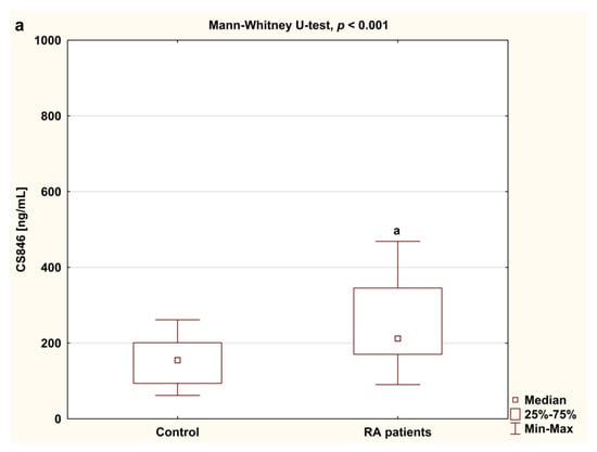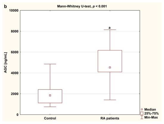 | Characteristic | Control A | RA Patients (n = 50) B | p A vs. B |